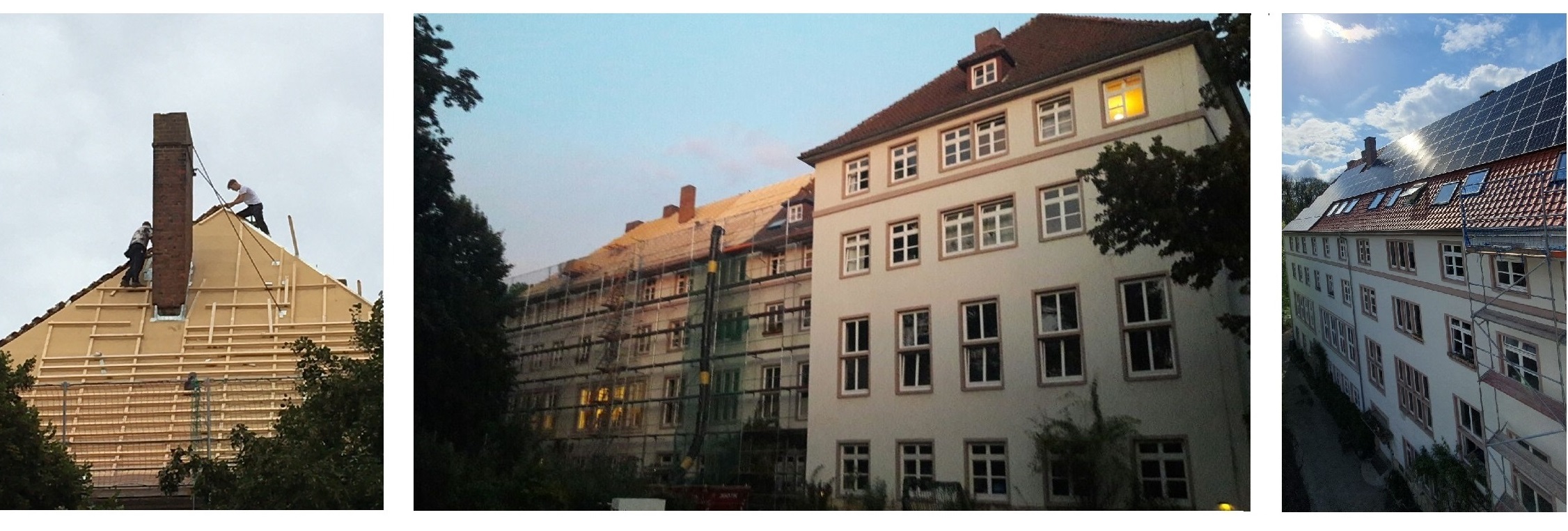 Im Jahr 2023 wurde unser Dach saniert und eine große Photovoltaik- und Solar-thermieanlage sowie ein neues Blockheizkraftwerk im Keller installiert.